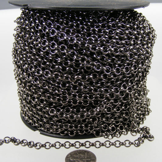 Gunmetal ROLO Chain bulk, 10 ft of SOLDERED Rolo Chain - 3.1mm Soldered Links - Wholesale Bulk - 31BL