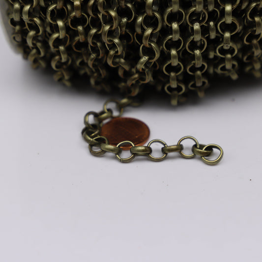 Antique Brass Rolo Chain bulk Chain, 32 ft of Rolo Bronze Cable Chain 3.8mm - Unsoldered Links - Bulk Chain - 38ROLO
