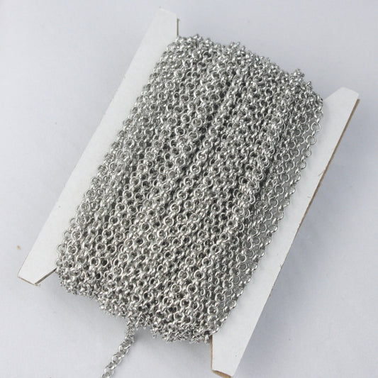 32 ft of Rhodium Plated Rolo Cable Chain 3.8mm - Unsoldered Links - 38ROLO