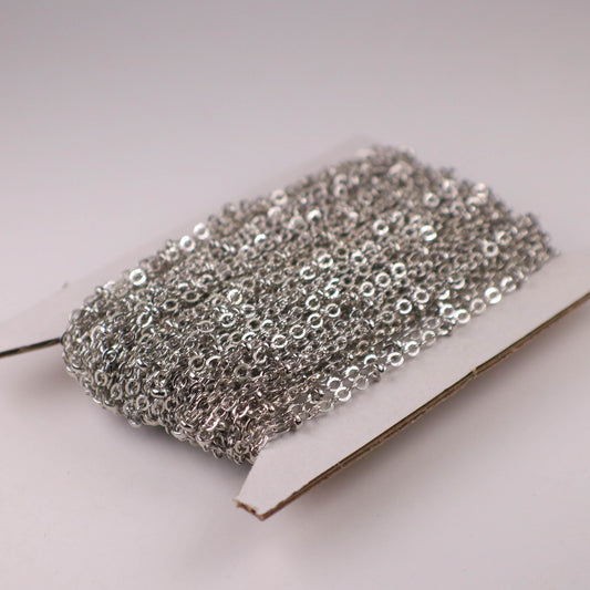 10 ft Antique Silver Satellite Chain Flat BALL Chain - 2.4x1.7mm SOLDERED link - Rhodium Tiny Small Ball Flat Cable Chain - 2417SAT