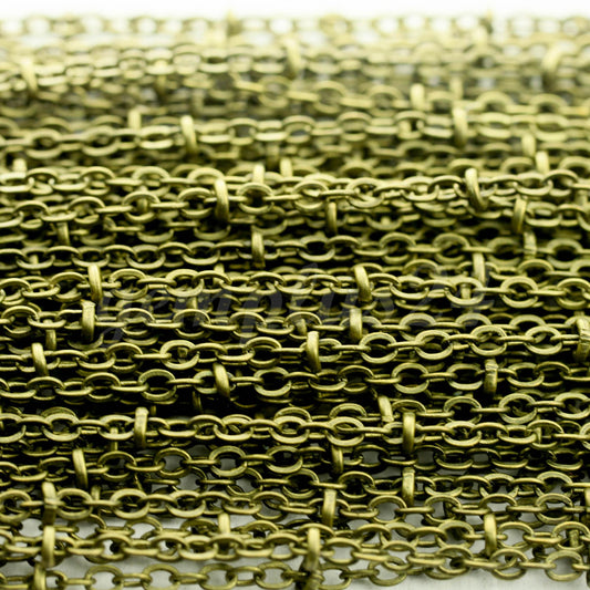 32 ft Antique Brass Satellite Chain Flat BALL Chain - 2.4x1.7mm SOLDERED link - Antique Bronze Tiny Small Ball Flat Cable Chain- 2417SAT