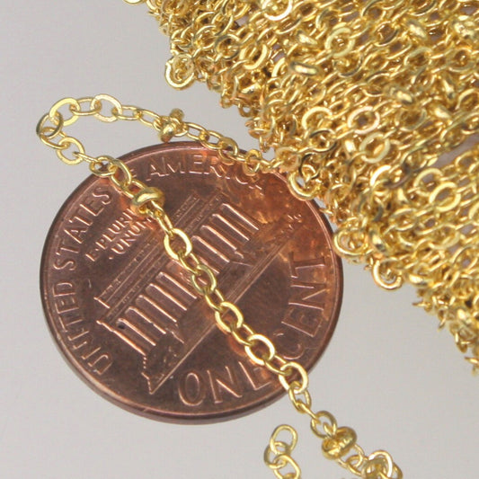 32 ft Gold Plated Satellite Chain Flat BALL Chain - 2.4x1.7mm SOLDERED link - Tiny Small Ball Flat Cable Chain - Bulk Wholesale - 2417SAT