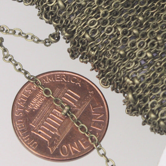 3 ft spool of Antique Brass Satellite Finished VINTAGE Flat tiny BALL Chain - 2.4x1.7mm SOLDERED link - 2417SAT