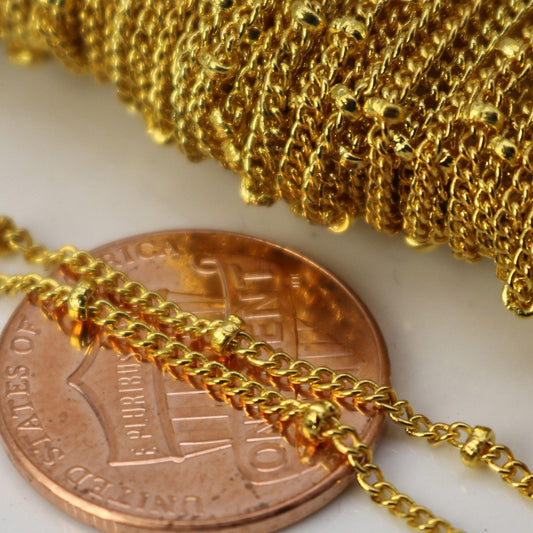 100 ft spool of Gold Plated Dainty curb BALL Satellite Chain - 1.3mm soldered link - with FREE Adequate Jumpring (100 pcs) - 1.3SAT