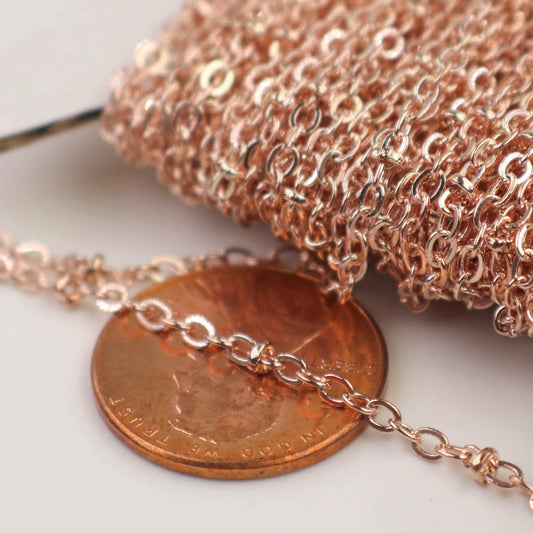 100 feet ROSE Gold Plated Satellite Chain Flat BALL Chain - 3x1.7mm SOLDERED link - Tiny Small Ball Flat Cable Chain - Bulk - 317FSAT