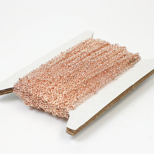New 32 feet ROSE Gold Plated Satellite Chain Flat BALL Chain - 2.4x1.7mm SOLDERED link - Tiny Small Ball Flat Cable Chain - 2417FSAT