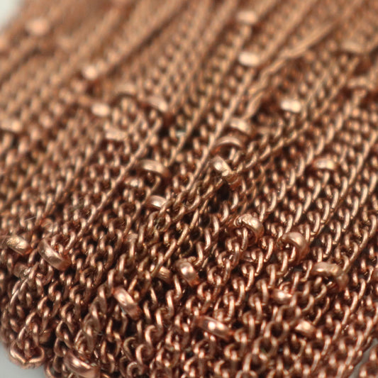 Sample Lot 3 feet of Antique Copper Finished over brass Dainty Delicate BALL curb chain Satellite Chain - 1.3mm soldered link - 1.3SAT