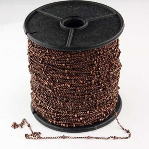 300 ft LIGHT Antique Copper BALL Solder Curb Chain - 1.6mm - Tiny Satellite Solder Curb Chain - Free Jumpring (100pcs) - from USA - 1.6SAT