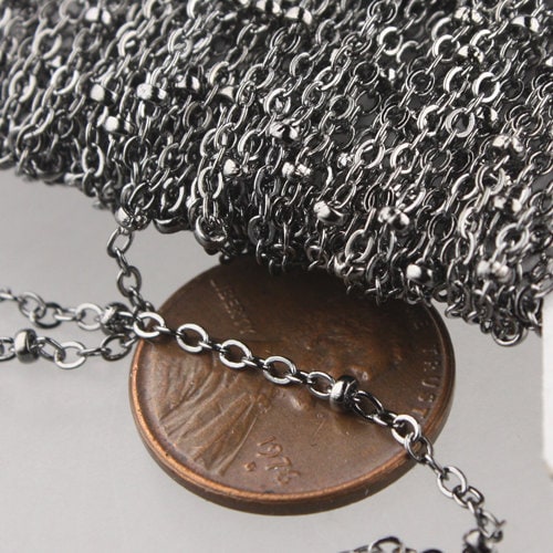 32 ft spool of Gunmetal Dainty Delicate curb SatelliteBall chain - 1.3mm soldered link - 1.3SAT
