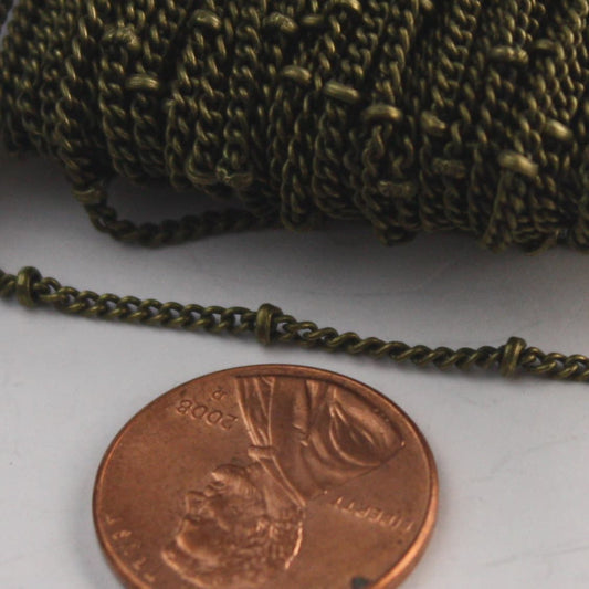 100 ft Antique Brass Satellite Chain Flat BALL Chain - 2.4x1.7mm SOLDER Chain link - Antique Bronze Tiny Small Ball Flat Cable - 2417FSAT