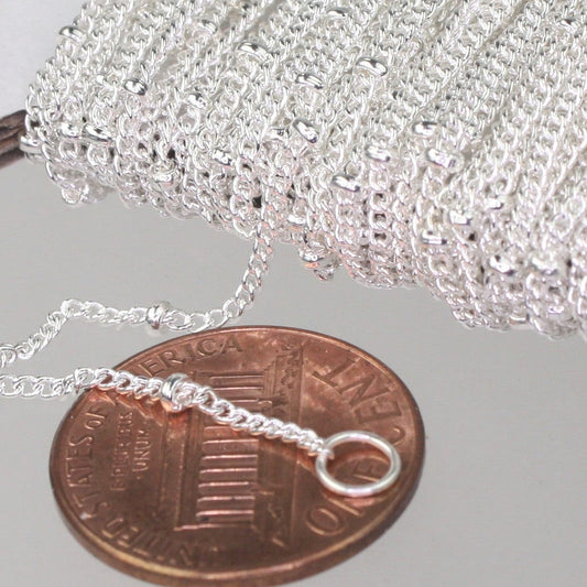 10 ft Sterling Silver Plated BALL Solder Curb Chain - 1.6mm - Tiny Satellite Solder Curb Chain - Free Jumpring (10pcs) - from USA - 1.6SAT