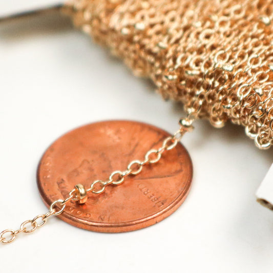 100 ft Pinky Gold (Champagne Gold) Plated Satellite Chain Flat BALL Chain - 2.4x1.7mm SOLDERED link - Dainty Chain - 2417FSAT