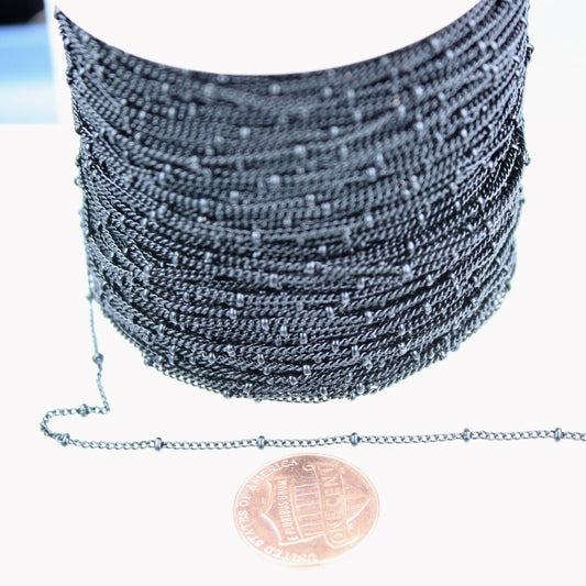 32 ft Black Dainty Delicate curb ball chain Satellite Chain - 1.3mm Solder Curb Bead Ball chain - 1.3SAT
