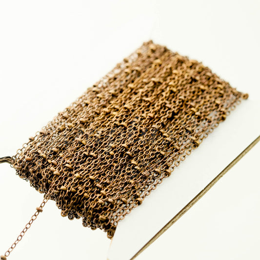 100 ft Antique Copper Satellite Dainty Delicate Chain Flat BALL Chain - 2.4x1.7mm SOLDERED link - Small Ball Flat Cable Chain - 2417FSAT