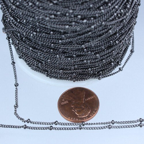 10 ft spool of Gunmetal Dainty Delicate curb SatelliteBall chain - 1.3mm soldered link - 1.3SAT