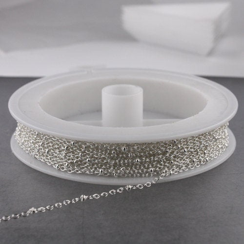 Sterling Silver Plated Chain Bulk Chain, 10 ft spool of Tiny Satellite Chain Cable BALL Chain - 2.0x1.4mm SOLDERED Necklace - 2014SAT