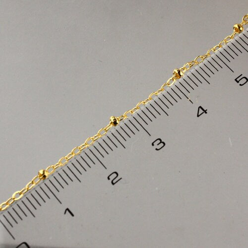 3 ft Gold Plated Satellite Chain Flat BALL Chain - 2.4x1.7mm SOLDERED link - Tiny Small Ball Flat Cable Chain - Bulk Wholesale - 2417FSAT