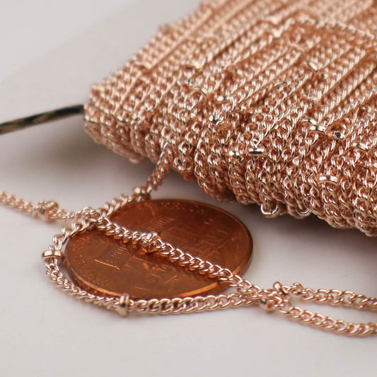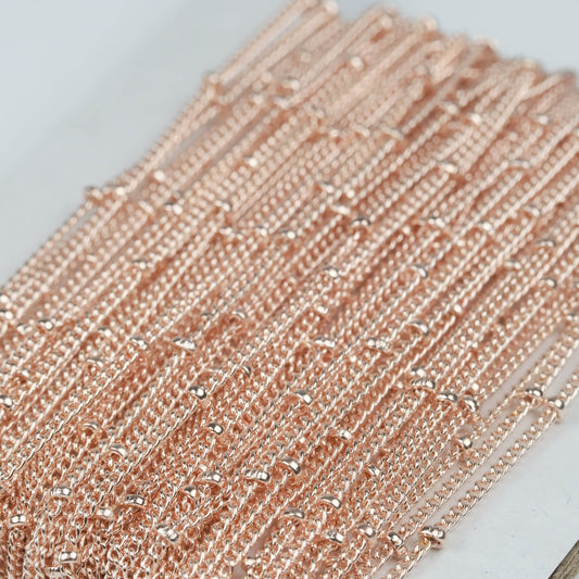 32 Ft Rose Gold Satellite Chain Bulk - Dainty Delicate Cable BALL Bead Chain - 1.3mm Curb SOLDERED Necklace Chain - 1.3SAT