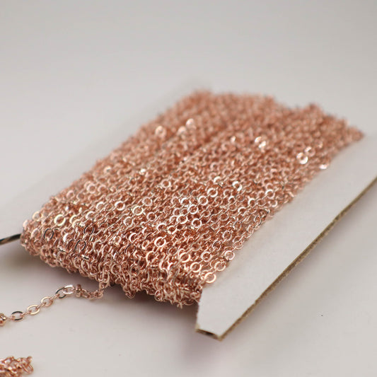 10 feet ROSE Gold Plated Satellite Chain Flat BALL Chain - 3x1.7mm SOLDERED link - Tiny Small Ball Flat Cable Chain - Bulk - 317FSAT