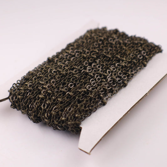 100 ft Antique Brass (Dark) Satellite Chain Flat BALL Chain - 3x1.7mm SOLDERED link - Antique Bronze Tiny Small Ball Flat Cable - 317FSAT