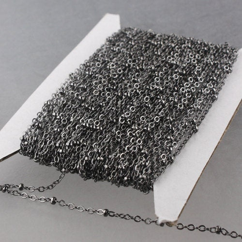 10 ft Gunmetal Satellite Chain Flat BALL Chain - 2.4x1.7mm SOLDERED link - Tiny Small Ball Flat Cable Chain - 2417FSAT