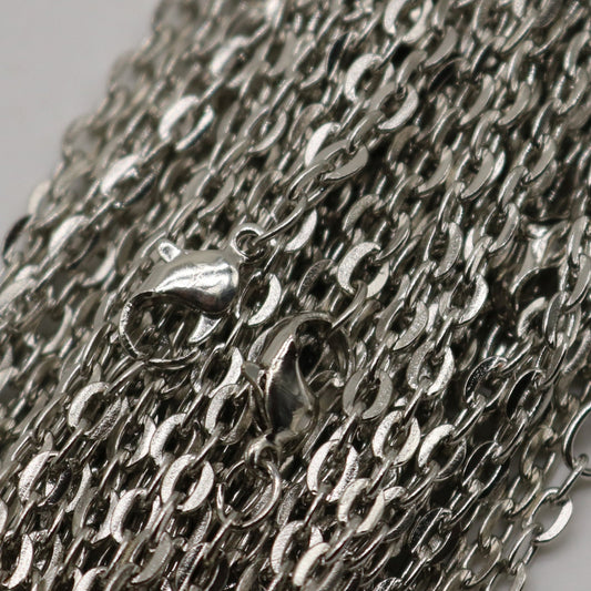 50 pcs of 24 inch Flat Cable Chain Necklace With Lobster Clasp - Rhodium Plated - 3x4mm Link - Ship from California USA
