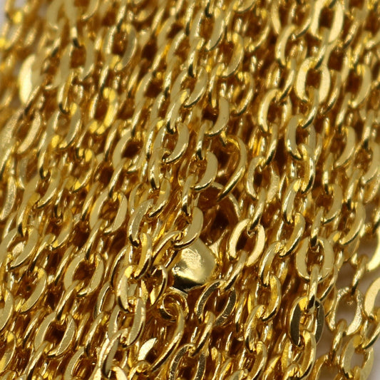 50 pcs of 24 inch Flat Cable Chain - 24K Gold Tone Plated - 2x3mm Link - Ship from California USA