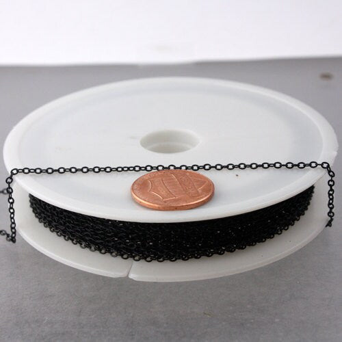 100 ft spool of BLACK little Oval Flat Soldered Cable Chain 2.4x1.7mm - 2417F