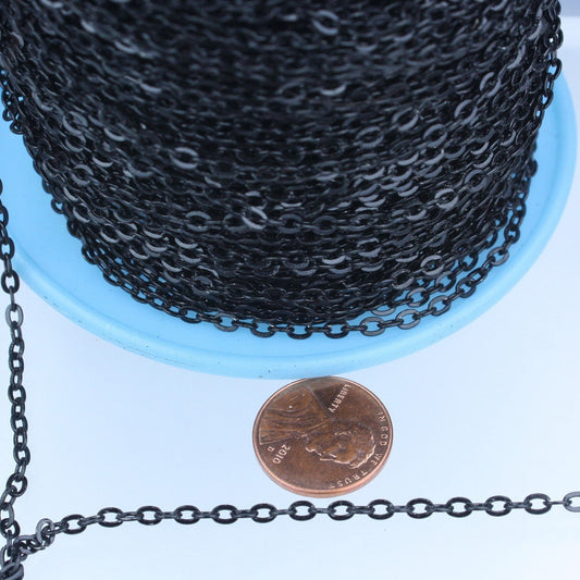 SALE Sale 50 ft spool of Black Finished Flat Round cable chain - 3x2.2mm - unsoldered link - 322FLAT