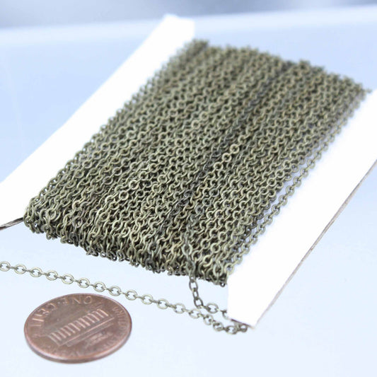 10 ft Antique Brass Flat Cable Chain - 3.4x2.9mm SOLDERED Link - Antique Bronze Bulk Flat Soldered Cable Chain - 3429F-AB