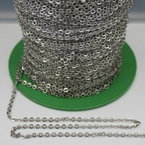 300 ft spool of Silver Plated Flat Round cable chain - 3x2.2mm - unsoldered link - 322FLAT