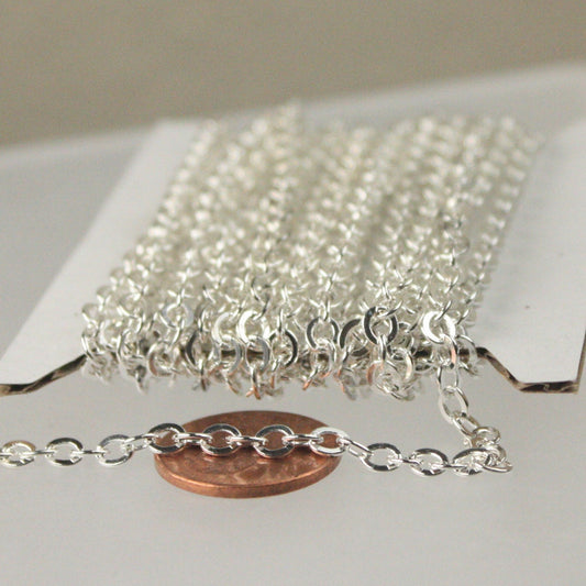 300 ft Sterling Silver Plated Chain - 2.4x1.7mm SOLDER Chain - little Oval Flat Soldered Cable Chain - Bulk Dainty Delicate Chain - 2417F