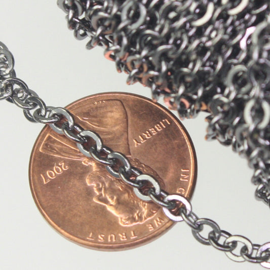 10 ft spool of Gunmetal Flat ROUND Soldered Cable Chain - 3.4x3.4mm SOLDERED Link - 3434F