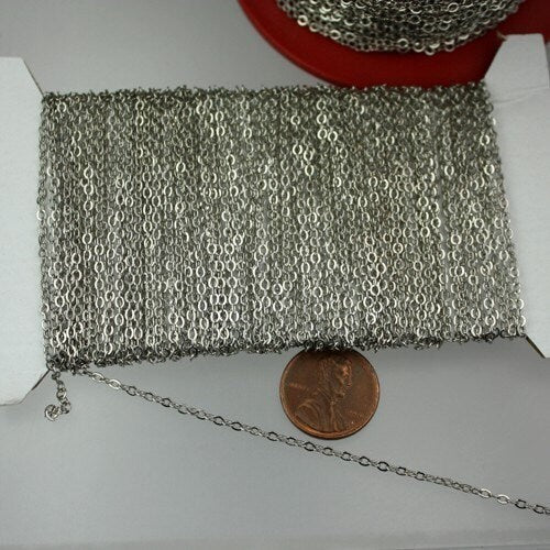 50 ft spool of Silver Plated Flat Round cable chain - 3x2.2mm - unsoldered link - 322FLAT