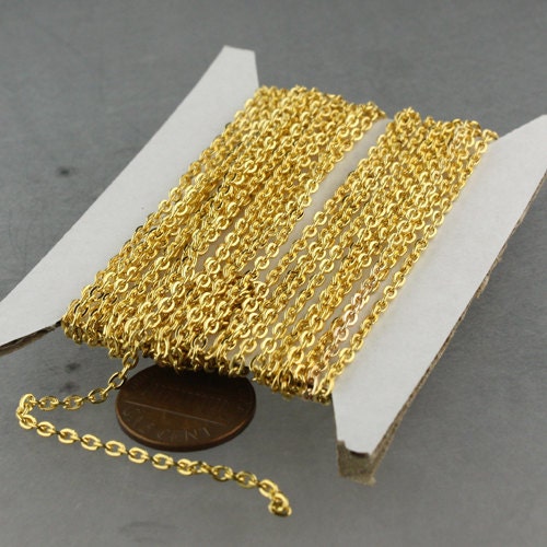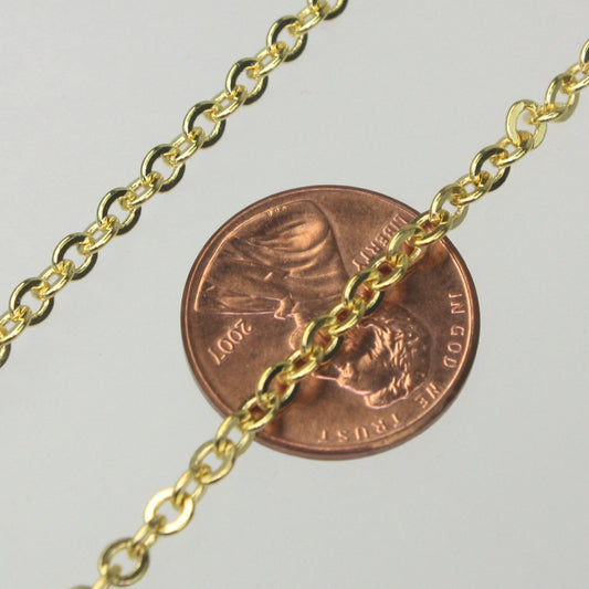 3 ft Gold Plated Chain - 2.4x1.7mm SOLDER Cable Chain - little Oval Flat Soldered Cable Chain - Bulk Wholesale Chain - 2417F