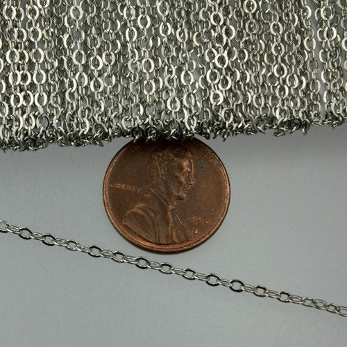 Rhodium Plated Flat Chain Bulk, 32 feet Antique Silver Flat Cable Chain - 3x1.7mm SOLDERED - Necklace Bracelet DIY Wholesale Bulk 317F