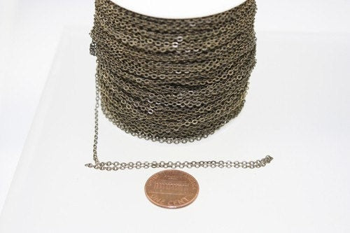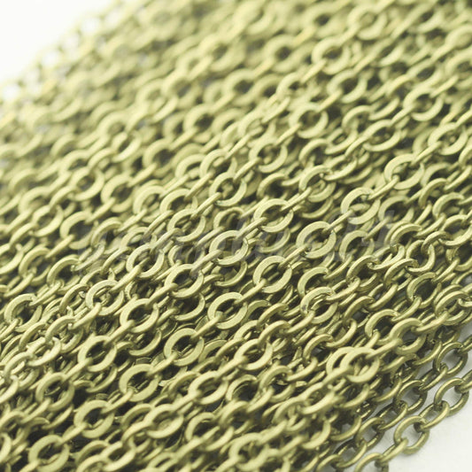 100 ft Antique Bronze Chain - 2.4x1.7mm SOLDER Chain - Antique Brass little Oval Flat Soldered Cable Chain - Bulk Wholesale Chain - 2417F