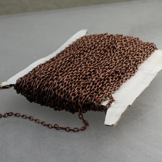 Antique Copper Chain Bulk Chain, 10 ft spool of Antique Copper finished Brass Flat Soldered Cable Chain 3.4x2.9mm - 3429F-AC