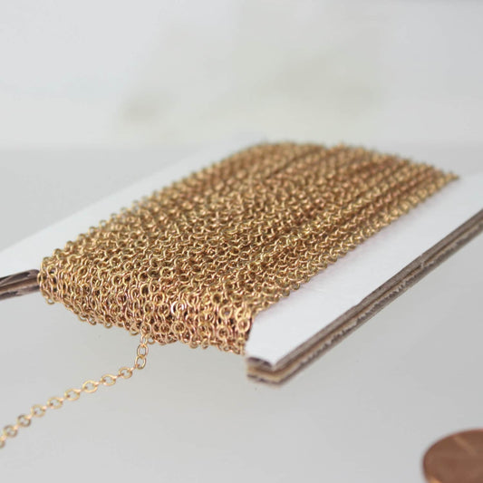 12 ft Gold Plated Chain - 2.4x1.7mm SOLDER Cable Chain - little Oval Flat Soldered Cable Chain - Bulk Dainty Delicate Chain - 2417F