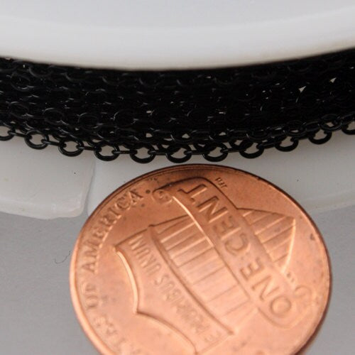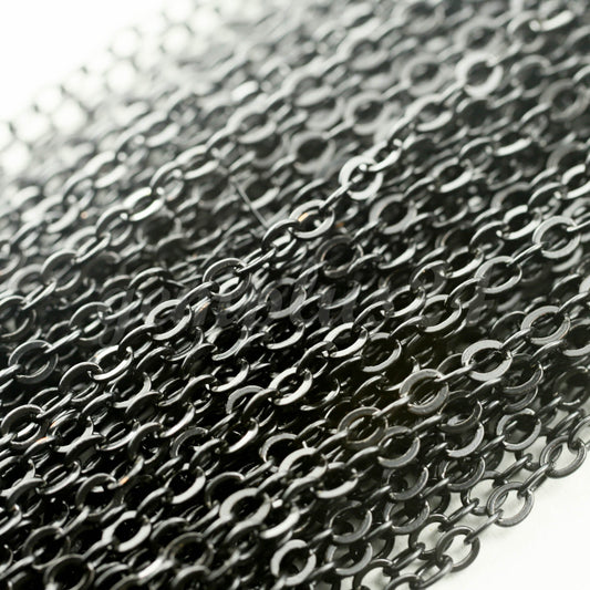 12 ft spool of BLACK Finished brass little Oval Flat Soldered Cable Chain 2.4x1.7mm - 2417F
