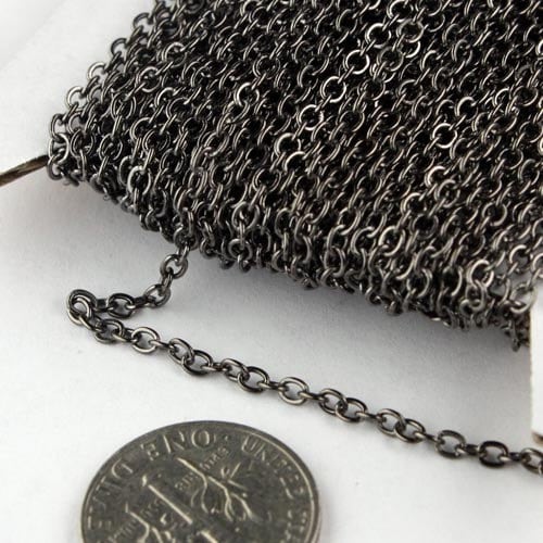 32 Ft spool of Gunmetal Finished Flat Round cable chain - 3x2.2mm - unsoldered link - 322FLAT