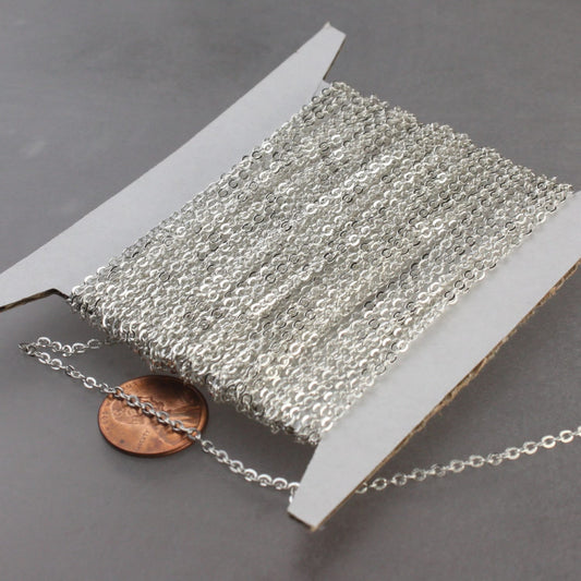 12 ft Sterling Silver Plated Chain - 2.4x1.7mm SOLDER Chain - little Oval Flat Soldered Cable Chain - Bulk Dainty Delicate Chain - 2417F