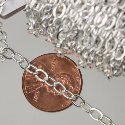 300 ft Sterling Silver Plated Flat Cable Chain - 3.4x2.9mm SOLDERED Link - Bulk Flat Soldered - Free Priority Mail - 3429F-SV