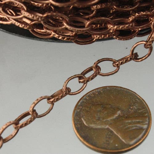 5 Ft. Antique Copper Chain Bulk Chain, Textured finished Drawn oval Cable chain - 9x4.5mm unsoldered link- 9045DR