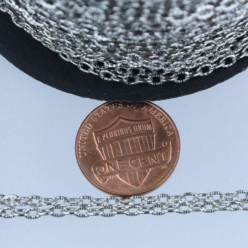 Rhodium Texture Chain Bulk, 32 ft. of Antique Silver Flat Texture Oval Chunky Cable Chain - 3x2mm Unsoldered - 32TEX