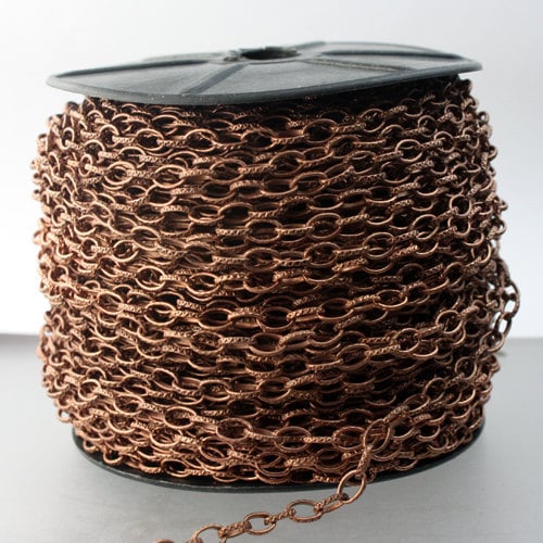 STRONg 19G New - 32 feet of bulk chain, Antique Copper Plated Texture Drawn Cable Chain - 6.3x3.5mm Unsoldered - 6335DR-EX