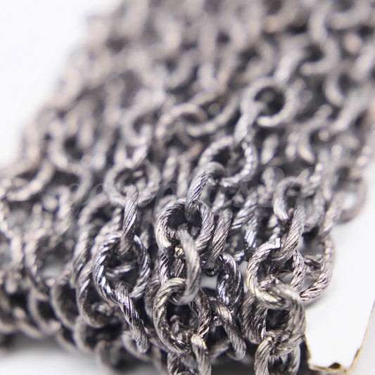 12 ft. Textured Gunmetal finished Drawn Oval Cable chain - 9x4.5mm unsoldered link- 9045DR