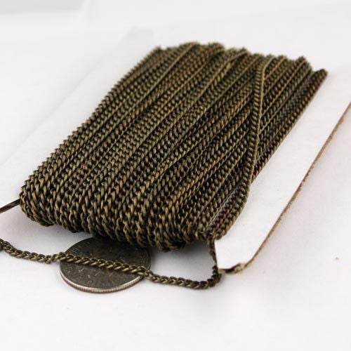 32 ft of Antique Brass Finished Curb Chain - 2.2mm 0.6mm Unsoldered Link - 2.2S