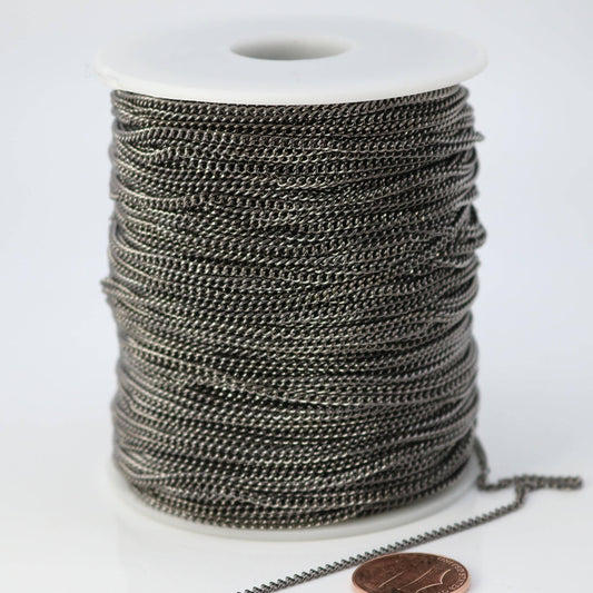 32ft. spool of Gunmetal little curb chain - 1.5mm Unsoldered link - 15CURB