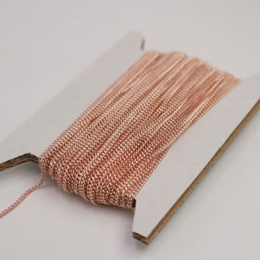 100 Ft Non TARNISH Curb Chain - Pink Copper Plated Micro Tiny Small Curb Chain - 1.3mm SOLDER - Anti Tarnish Free Resistant Chain - AT1.3S